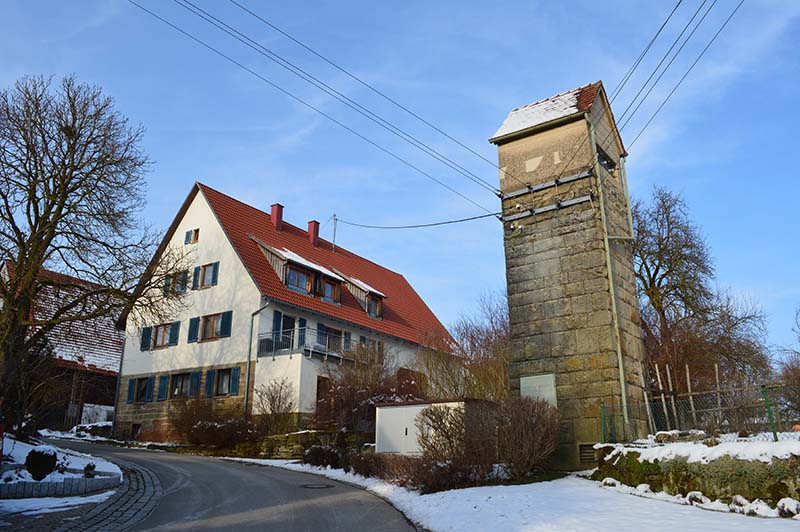 - 1945 am 17.4. wurden Haus und Hof nach einem Bombenangriff zerstört. Ein Wiederaufbau wurde im Januar 1946 vom Landratsamt Schwäb. Hall genehmigt. Als Baukosten wurden 8500.- Mark angegeben. Wegen des Kriegsschadens wurde keine Genehmigungsgebühr für den Staat verrechnet.