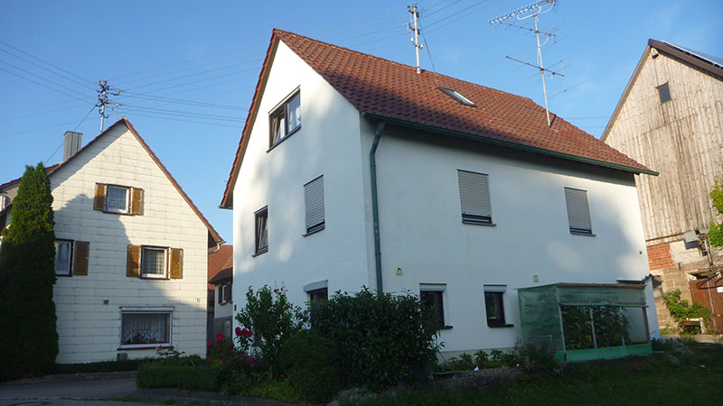 - 1873 Gottlieb Michael Grau, Bauer und Taglöhner (1844 -1922 in der Wohnung seines Sohnes) aus Westheim und Eva Catharina geb. Heinold aus Rieden (1844 - 1918 in der eigenen Wohnung). Heirat 1871. Aus dem Nachlaß des Johann Jakob Peter Hinderer erkauft. Sein Sohn Michael Friedrich Grau kauft das Anwesen in der Michelfelder Str.9