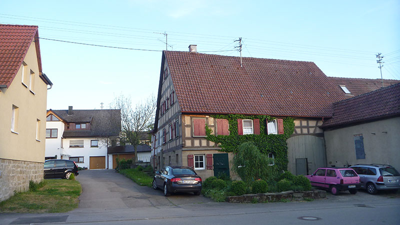1869 Ausding-Anbau wird von Rosina Catharina Griesheimer und Friedrich Griesheimer erkauft. 1/5 am Haus insg. 3/7 mit dem Anbau von Johann Georg Schmelcher ( 1827 - 1910) aus Niederndorf und seiner Ehefrau Christine Regine Gschwend (1828 - 1905) aus Bibersfeld . Nebst der halben Hofraithe.