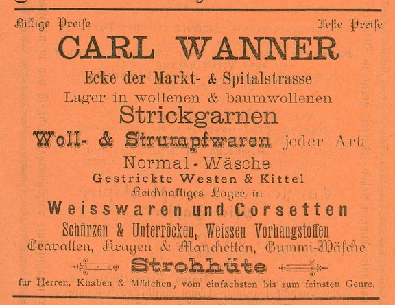 1884/1885: Karl Wanner, Kaufmann, kauft aus der Konkursmasse von Karl Keller.