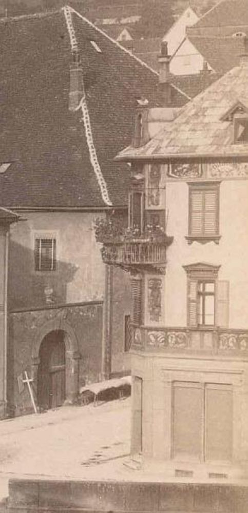 Im ursprünglichen, vom Hof her erreichbaren Treppenhaus des im Kern nach dem Stadtbrand von 1728 erbauten - heute weitgehend veränderten - Wohngebäudes befindet sich eine gut erhaltene hölzerne Treppenspindel: über zwei Stockwerke hinausreichend, aus einem Stamm, säulenförmig mit Profilierung an der Basis. Möglicherweise als Versatzstück später hier verwendet, dürfte die runde Treppenspindel mittelalterlichen Ursprungs sein. (StadtA Schwäb. Hall: Liste der Kulturdenkmale Stadt Schwäb. Hall, Stand 10/1982, S. 97)