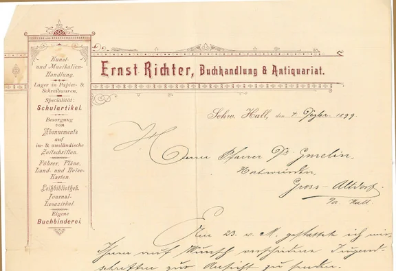 1894 verkaufte sie an ihren Sohn Wilhelm German, Buchhändler. Auf ihn wurde das Gebäude 1902 in das Grundbuch umgeschrieben. (StadtA Schwäb. Hall 19/838, S. 187-198)