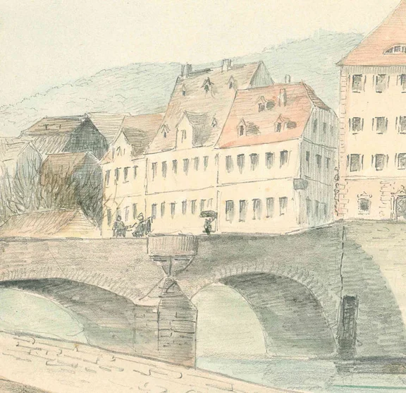1827: Wohnhaus 22,9 Ruten, Werkstatt 1 Ruten und Hof 1,5 Ruten, insgesamt 25,4 Ruten In der Stuttgarter Straße