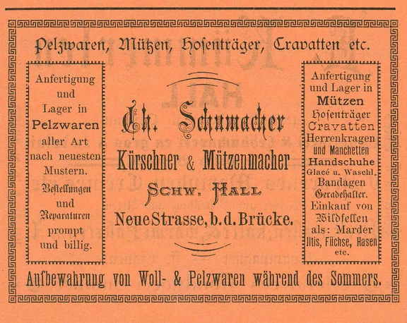 1883: Der Uhrmacher Adolph Schöninger lässt sich den Bau eines auf 7 qm Grundfläche zu erstellenden Anbaus auf der Rückseite des Wohnhauses Nro. 766 in geriegeltem Fachwerk genehmigen.