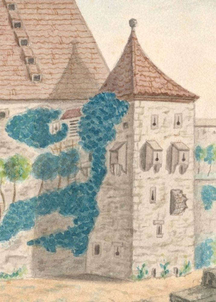1827: Turm mit 5,3 und 6 Ruten, insgesamt 11,3 Ruten Grundfläche