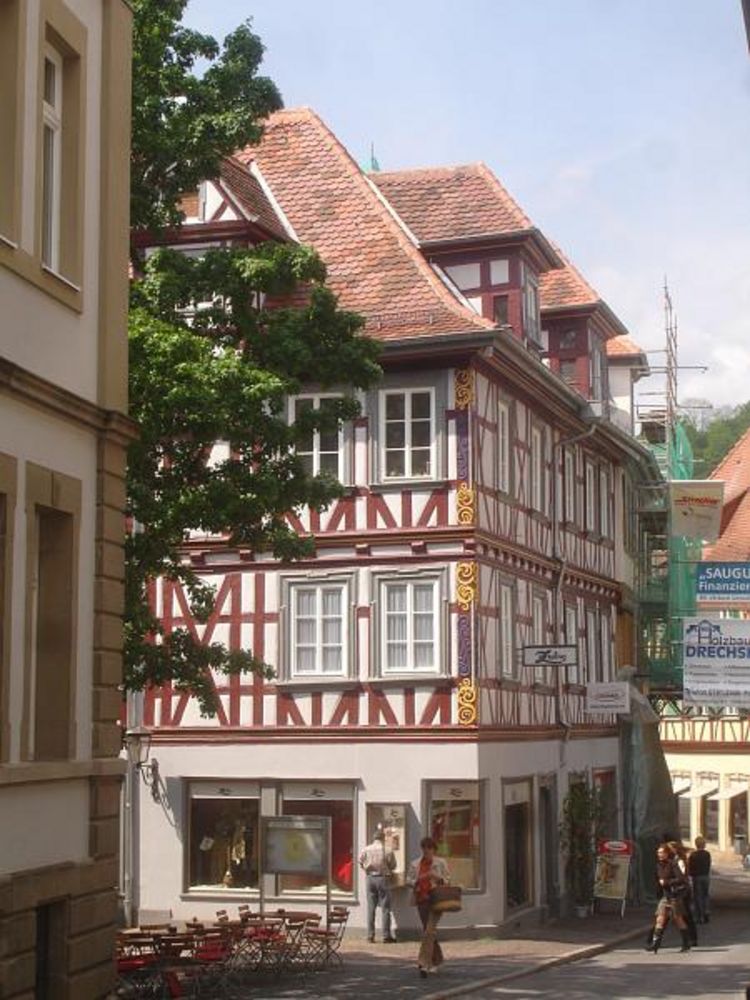 Das dreigeschossige Fachwerkwohnhaus in Ecklage erhielt sein äußeres Erscheinungsbild in den Obergeschossen im 18. Jh. Im Erdgeschoss sind Reste des 18. Jh. zwei Holztürgewände. Die Obergeschosse zeigen zwei schwache Vorstöße, geohrte Fensterrahmung, konstruktives Fachwerk und reich geschnitzte Eckständer (mit Spuren der originalen Bemalung). Das Dachgeschoss wird von markanten Zwerchhäusern gegliedert mit aufwändig geschnitzten Eckständern. Eine gemalte Balkendecke ist Teil der ursprünglichen Innengestaltung des nach dem Stadtbrand von 1728 erbauten Wohnhauses, welches zu den aufwändiger ausgestatteten barocken Fachwerkgebäuden Halls zu zählen ist. (StadtA Schwäb. Hall: Liste der Kulturdenkmale Stadt Schwäb. Hall, Stand 10/1982, S. 209)