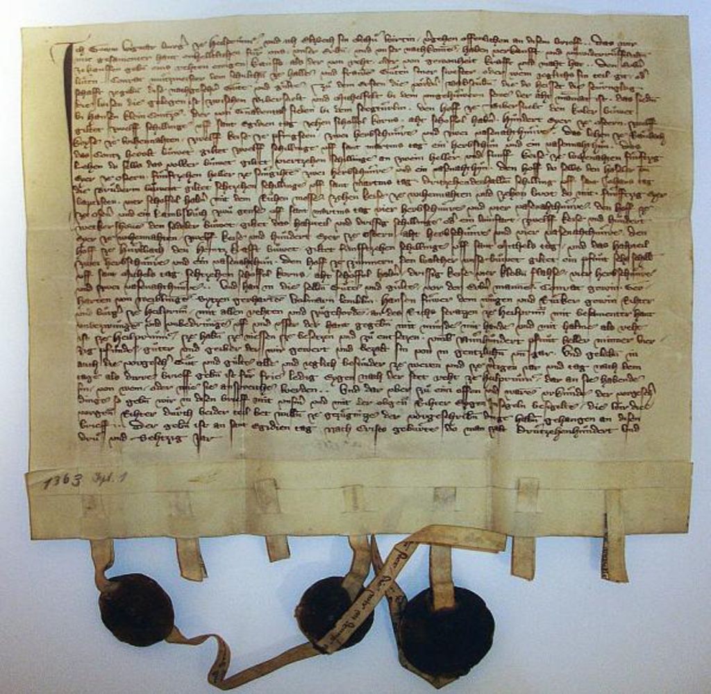 1363: Gewin Wigmar, Bürger zu Heilbronn, und seine Frau Elzbeth verkaufen am 1. September 1363 um 860 Pfund Heller Güter und Gültenan Konrad Münzmeister, Schultheiß zu Hall, und dessen Schwester Gute. Zu den Besitzungen gehört die vordere Badstube, die "Sturnglog" genannt wird.