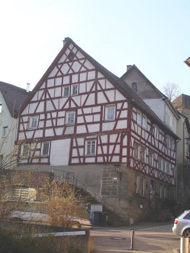 Rosenbühl 5 (Flst.Nr. 0-125/1). Fachwerk-Wohnhaus. Dreigeschossiges Gebäude in Ecklage, Sandstein-Erdgeschoss, aufwändig gestaltetes, konstruktives Fachwerk, 17. Jahrhundert. § 2 ( aus: Liste der Kulturdenkmale in Baden-Württemberg, Stadt Schwäbisch Hall, Stand 13.11.2013)