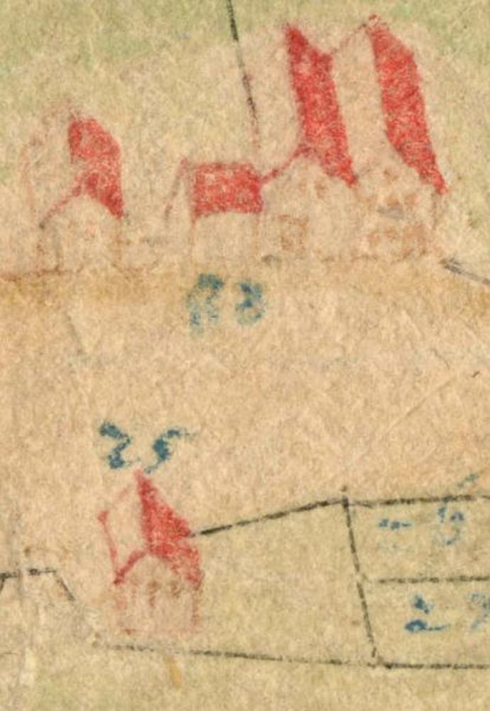 1827: Wohnhaus (7,3 Ruten) und zwei Anbauten mit Hof