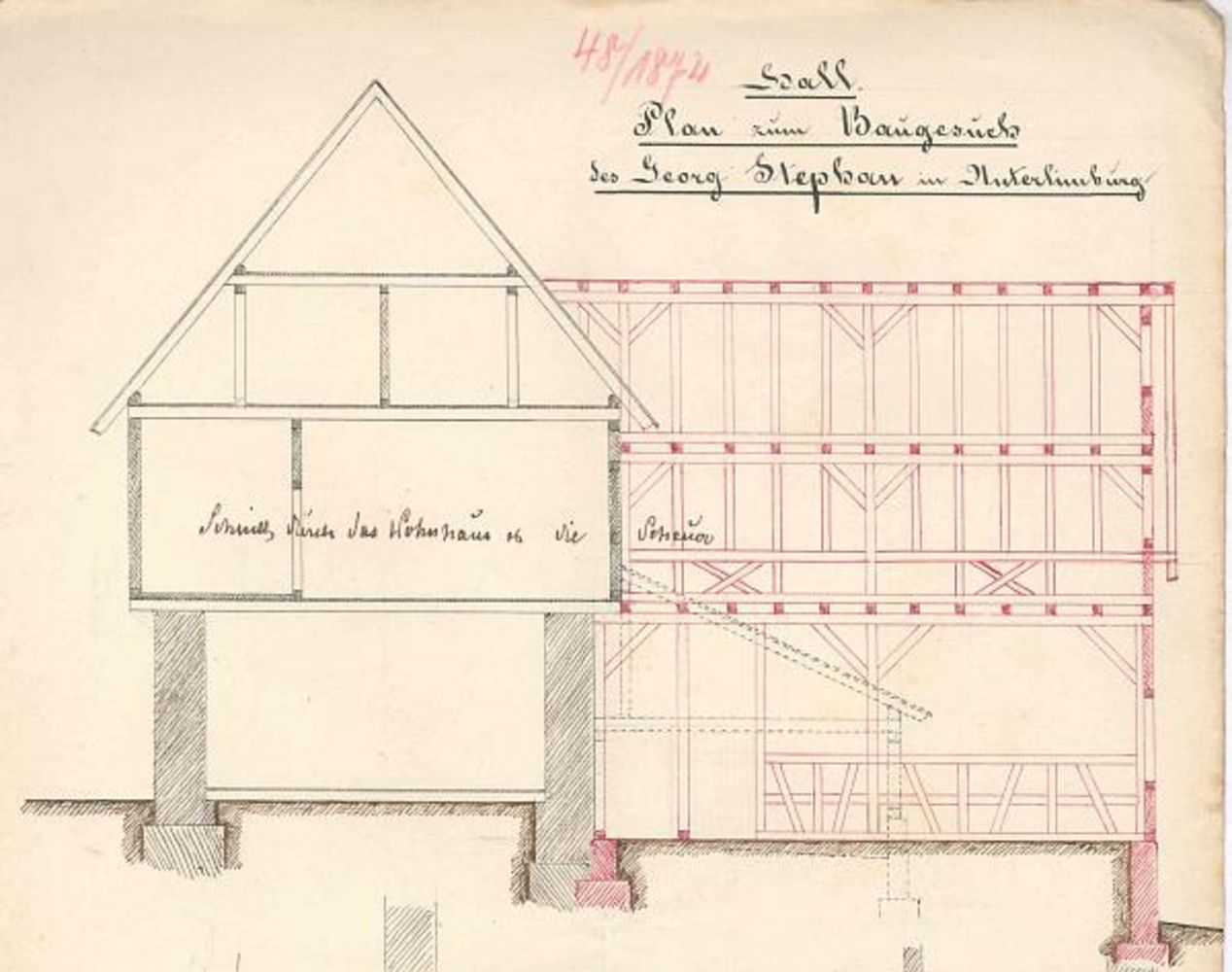 1872: Der Viehhalter Georg Stephan lässt eine neue Scheuer an Stelle eines Viehstalls hinten an sein Haus anbauen.