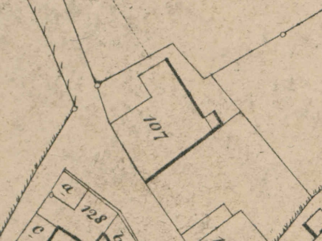 1827: Wohnhaus u. Anbau mit 18,2 Ruten, Hof 11,4, insgesamt 29,6 Ruten