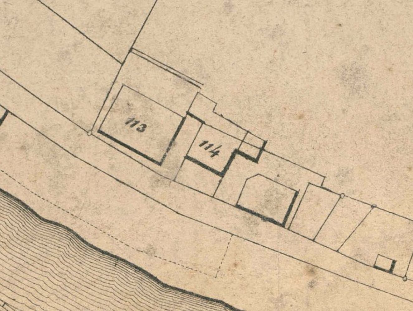 1827: Wohnhaus mit 4,7 und Anbau mit 8,4 Ruten, insgesamt 13,1 Ruten Grundfläche