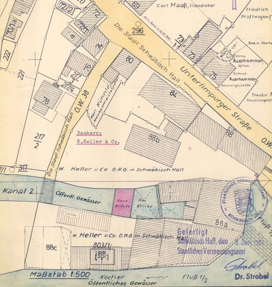 1969: Der Gemeinderat genehmigt den Kauf des Elektrizitätswerks W. Heller & Co., zu dem das Gebäude bislang gehört hat. Die Immobilien werden für 2,2 Mio. DM durch das Hospital zum Heiligen Geist erworben, das damit Eigentümer des Hauses wird und es an die neue Stadtwerke Schwäbisch Hall GmbH vermietet.