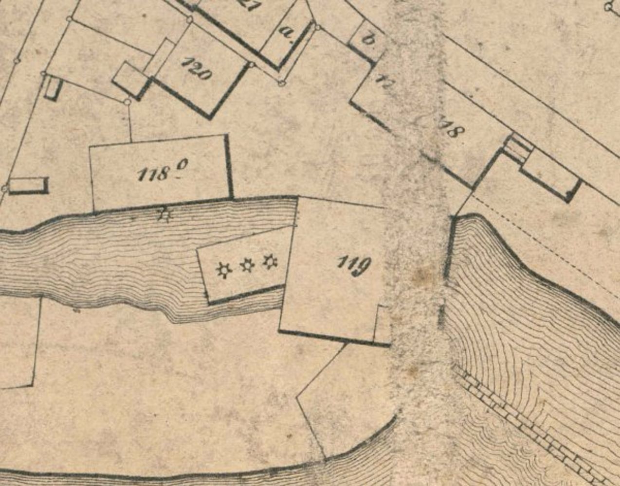 - ein zweistöckiges Kunstmühlengbeäude mit dreistöckigem Anbau samt Radstube (PKN 119),