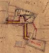 1827: Wohnhaus mit 31,8 Ruten, 2 Hühnerställe mit 6,1, Schweinestall 1,5 Ruten, Hof 11,2 und Hof zwischen dem Haus 13,3 Ruten, insgesamt 1/8 Morgen 4,7 Ruten Fläche