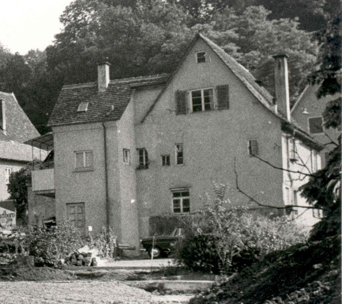 Das zweigeschossige, verputzte Fachwerkwohnhaus in Ecklage, mit asymmetrisch gruppierten Fensteröffnungen (Wohnstube), profiliertem Dachgesims bzw. Giebelvorstoß und Satteldach, entstand wohl um 1700. (StadtA Schwäb. Hall: Liste der Kulturdenkmale Stadt Schwäb. Hall, Stand 10/1982, S. 411)